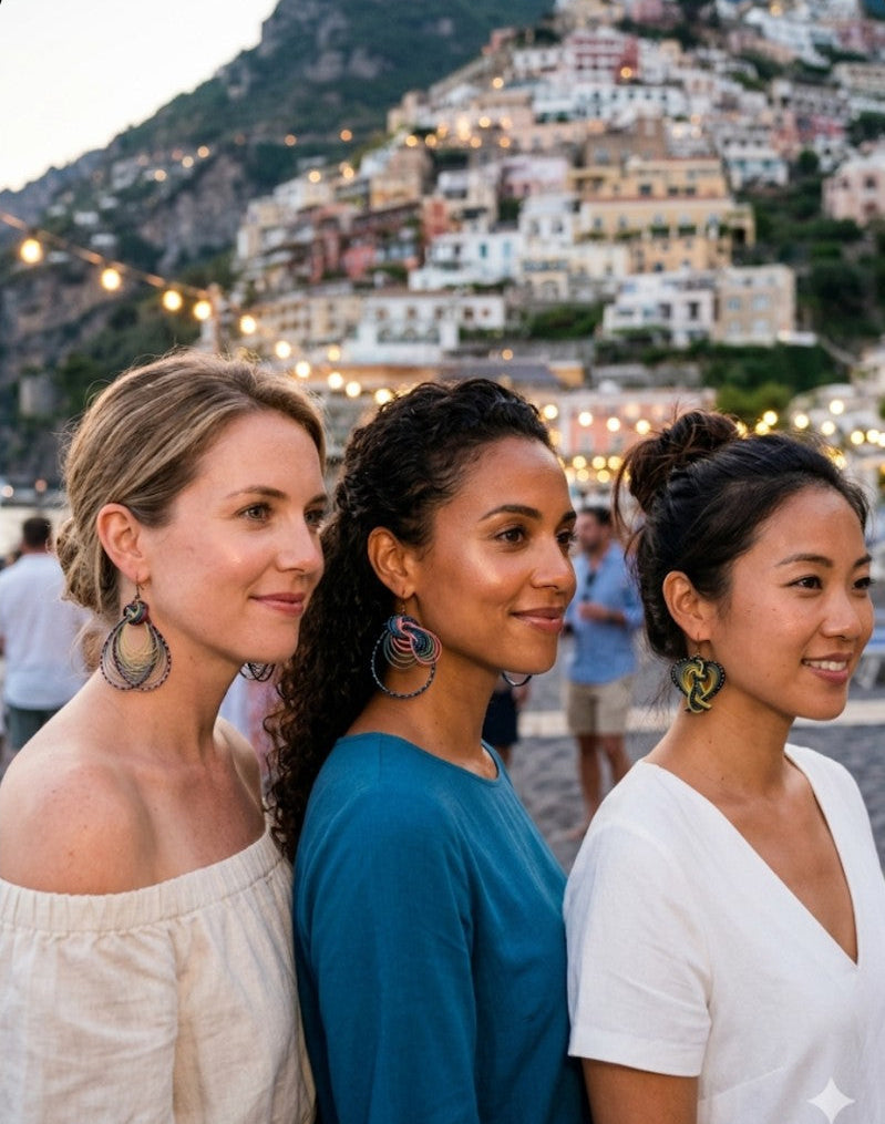 Light, sustainable and stylish. These earrings are crafted from natural Bamboo and Nickel-Free Metal — ideal for eco-conscious wearers.