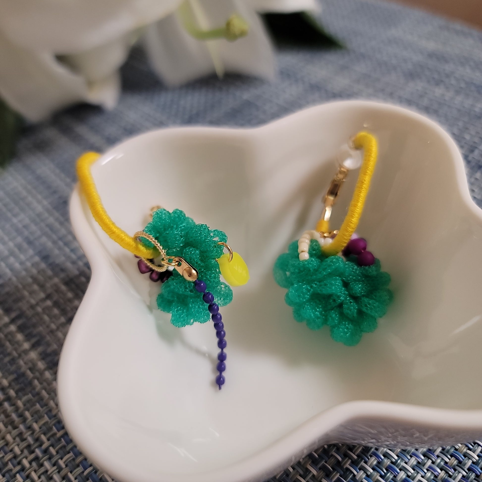 These Green Clip-on Earrings are delicately handcrafted using natural-tone beads and floral-inspired detailing. Designed for comfort without piercing, each pair is made in small batches by local artisans—making this a rare, single-stock piece.